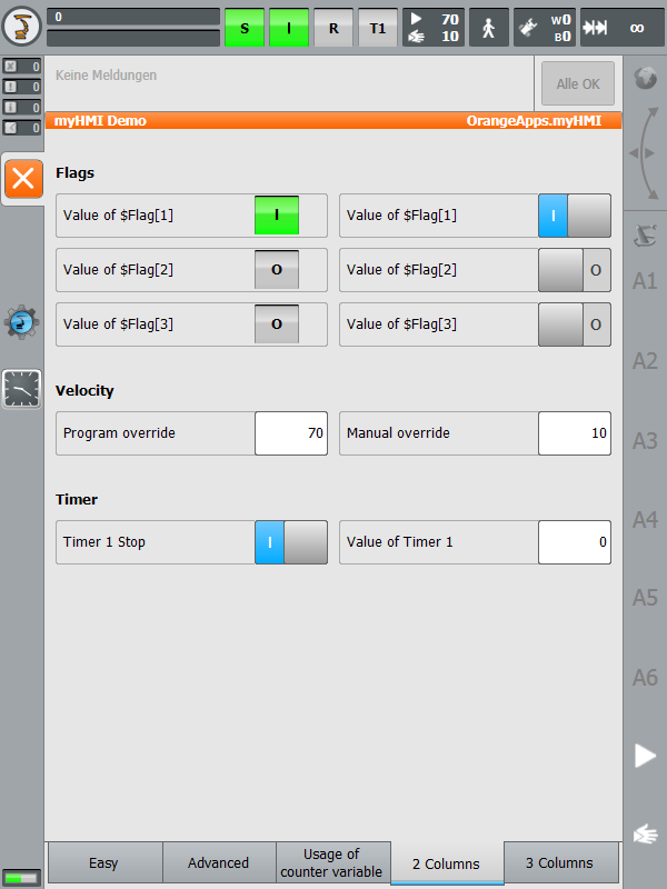 By simple XML-files you can create fully integrated user interfaces in order to display and manipulate any KRL variables. For this purpose, you have a variety of controls available.