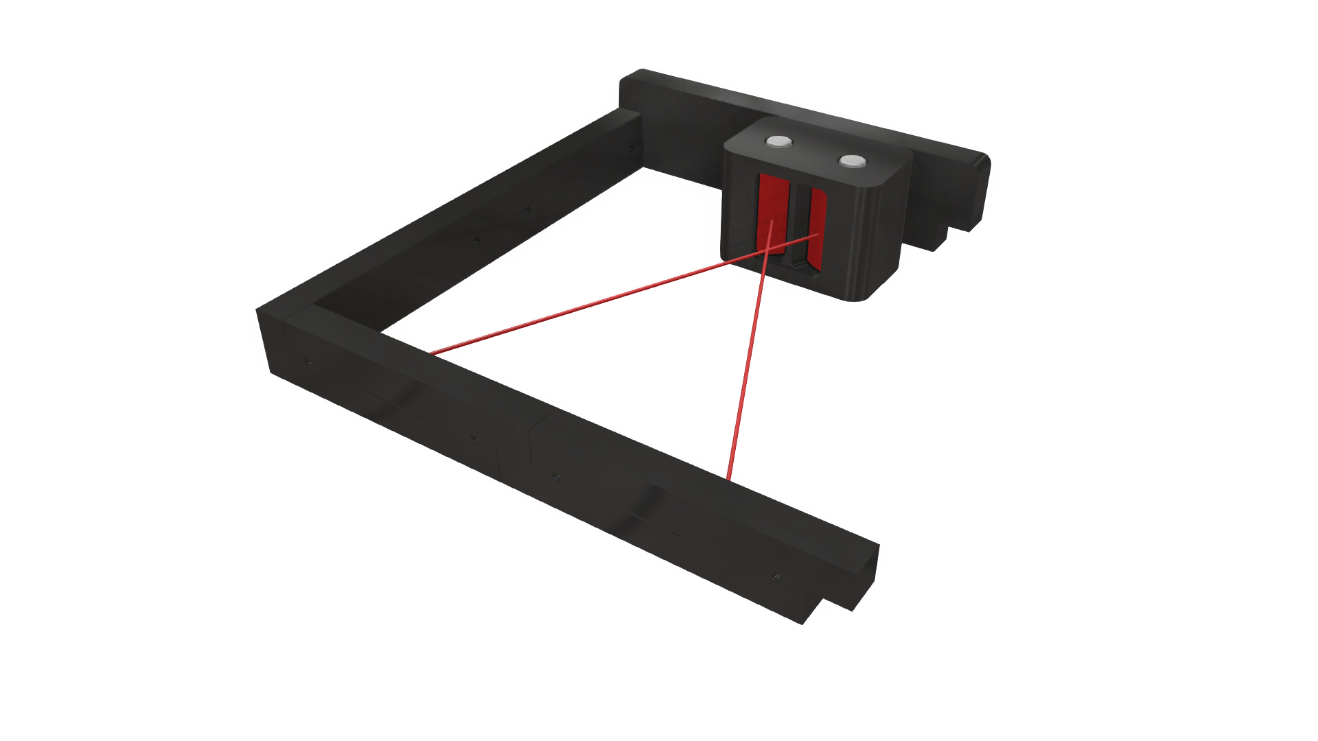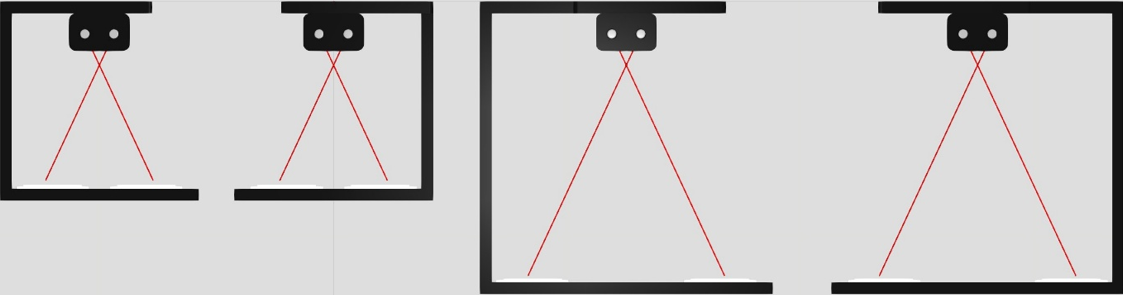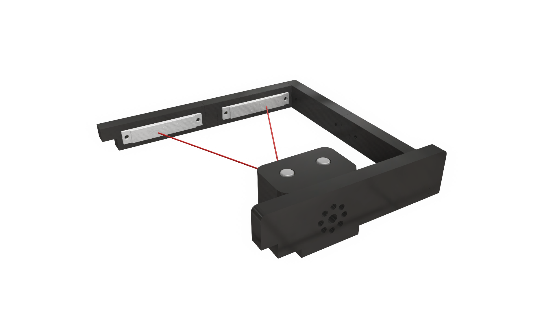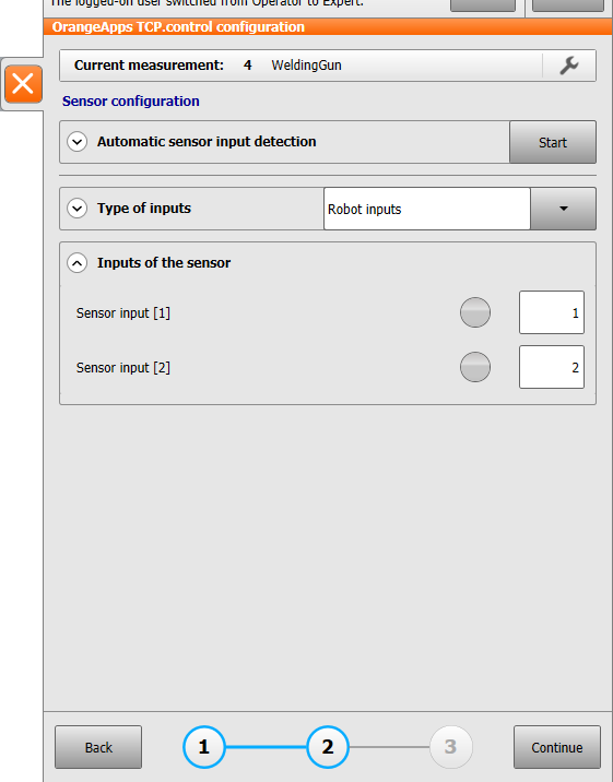 The sensor contains two laser measurement units, each connected to a digital input on the robot controller.