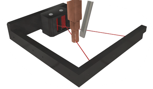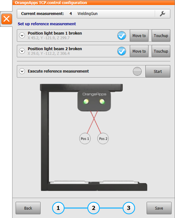 During initial setup, the robot motion to the sensor is defined within the robot program and a reference TCP measurement is recorded.