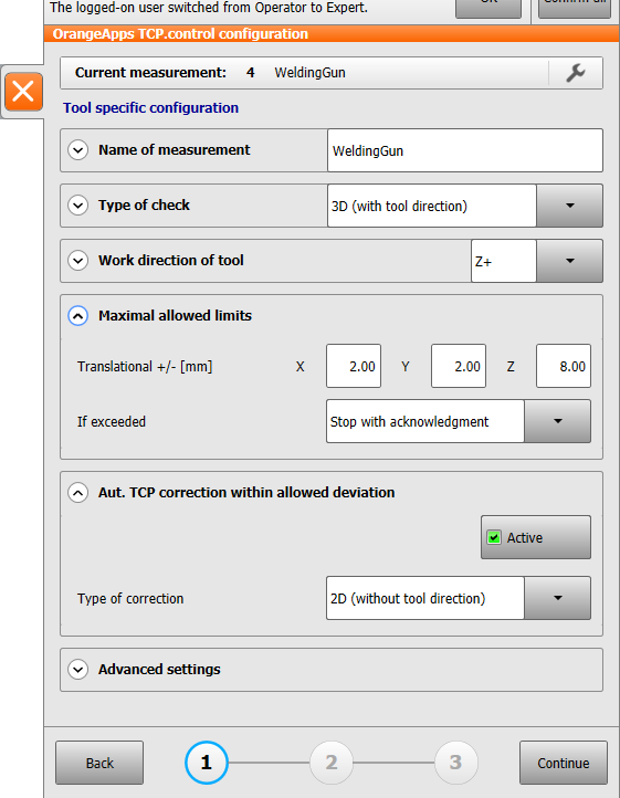 If required, the TCP data can be corrected automatically or an alert can be sent directly to the PLC.