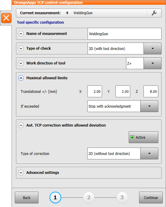 Configurable tolerance limits determine whether a deviation is acceptable. If required, TCP data can be updated automatically or a notification can be sent to a PLC.